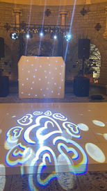Our Enhanced Professional Disco & DJ Service set up comes with everything you need including our professional DJ, stunning DJ booth, lighting and top quality sound system. We also include a 6m Backdrop behind the disco set up. (With a choice of our white or black setup) This package is suitable for up to around 150 people.